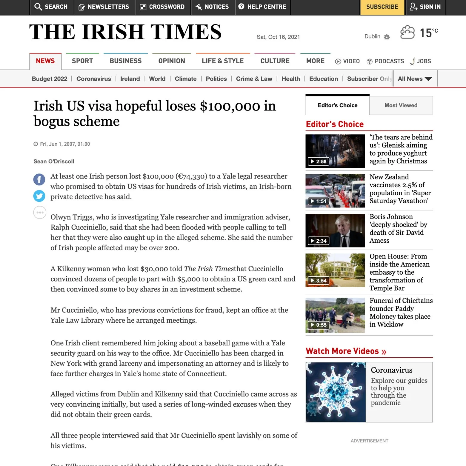 Selected Press Our firm has been featured in: Fox News New York Times NBC 4 New York New York Post RTÈ The Irish Times Washington Times Irish Central Newsmax Global Irish The Irish Times We uncover what they don’t want you to know Book free consultation